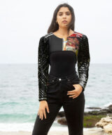 Steal the spotlight with vibrant prints on both the front and back, complete with a printed sleeve and those edgy studded ones.