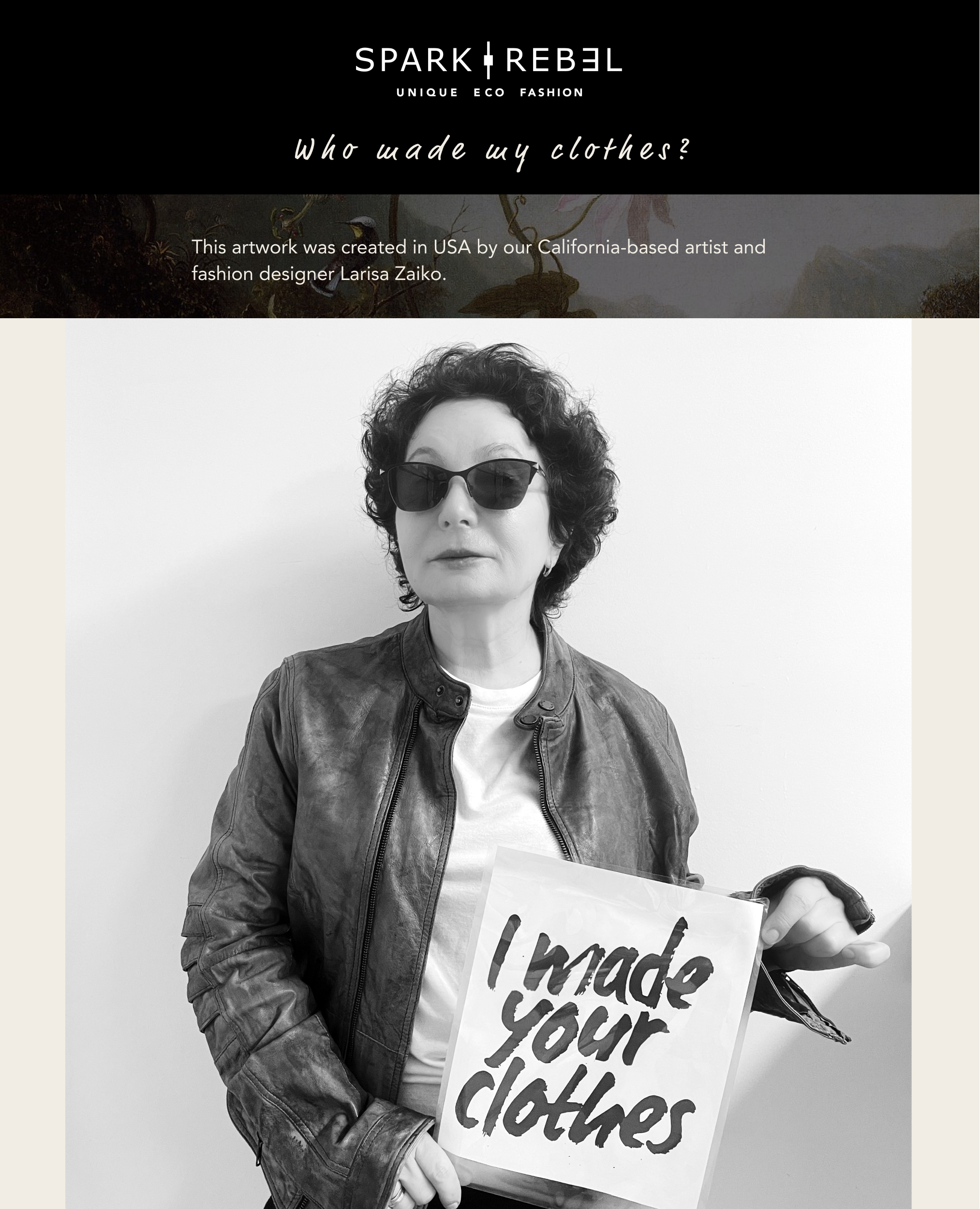Sustainability is at the core of everything we do at SPARK + REBEL. We use sustainable fabrics like organic Desserto cactus leather, OEKO-TEX Standard 100 certified organic cotton, recycled and upcycled overstock fabric. Our products are made without animal glues or toxic leather paint, and we offset carbon emissions and plant a tree with each purchase. All garments come in a recyclable box made of post-consumer waste.