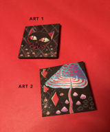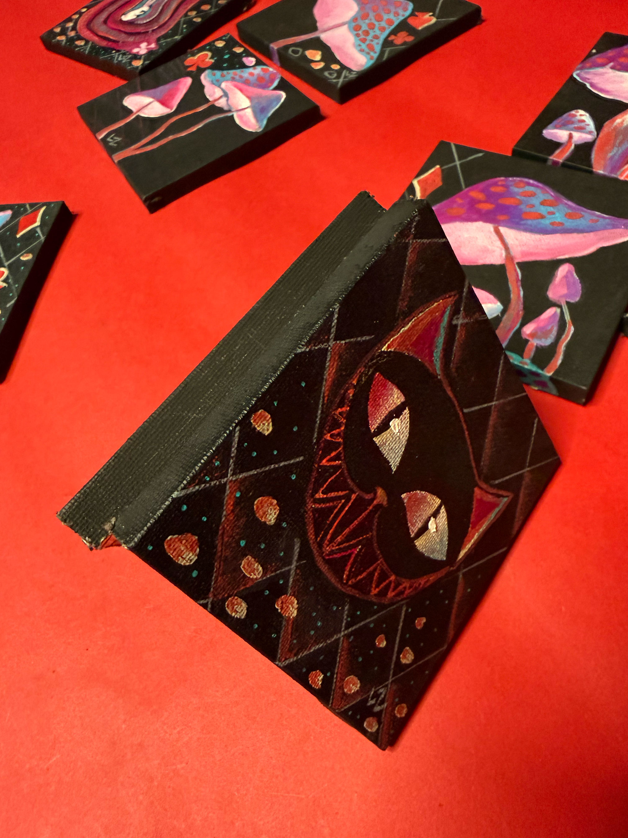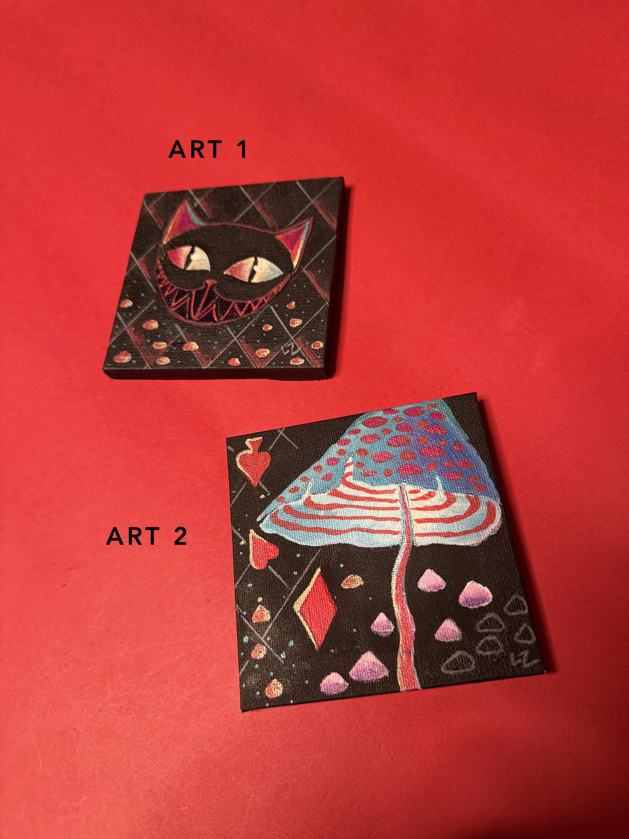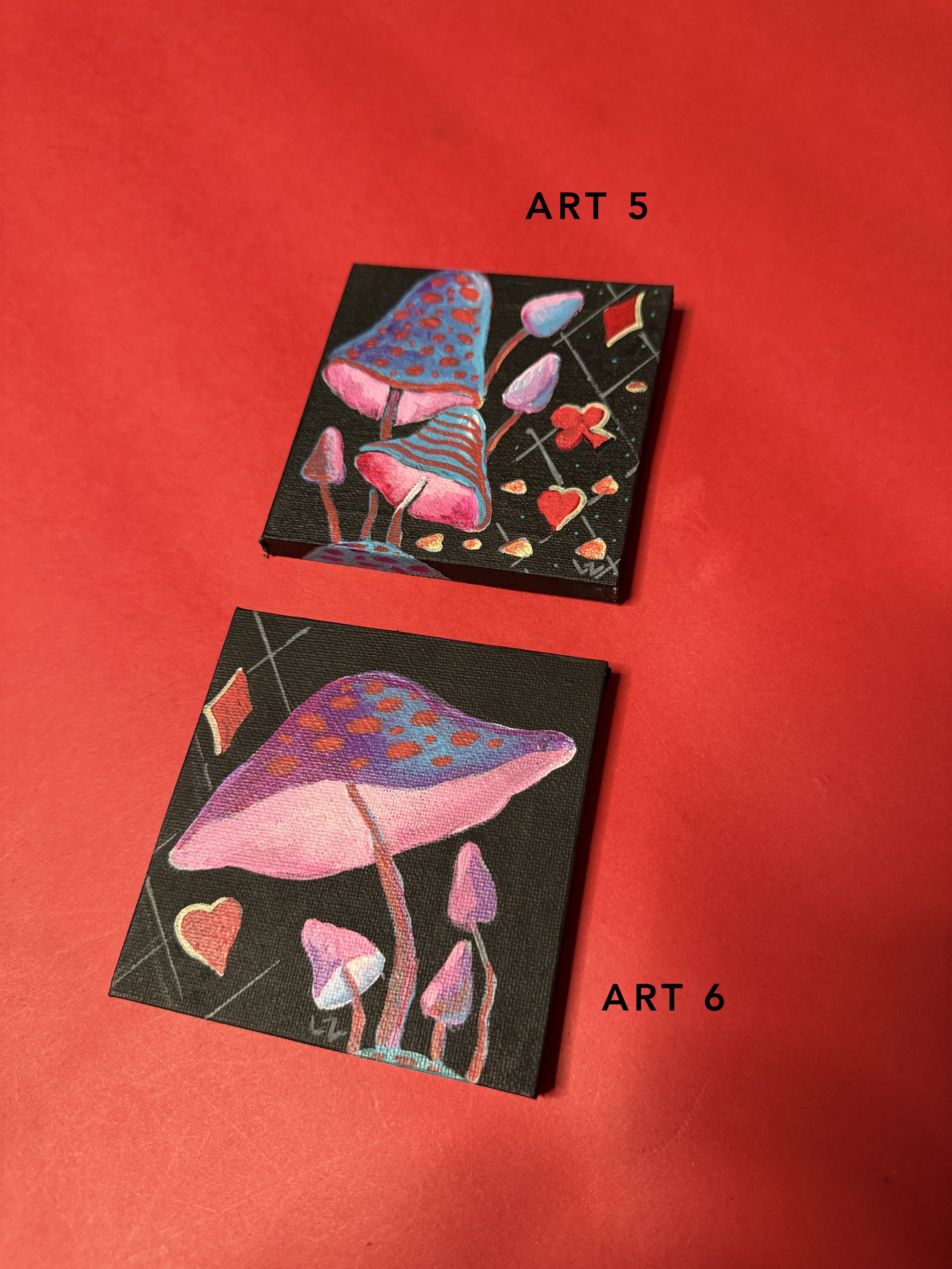 Step into Wonderland, SPARK + REBEL style. This mini art series was hand-painted by studio artist Larisa Zaiko, with each 4x4 inch canvas bursting with dreamy mushrooms, secret keys, and mischievous Wonderland energy. Every piece is signed, numbered, one-of-a-kind, and created in San Diego in 2025. You can choose your favorite from nine originals or build a full little gallery.