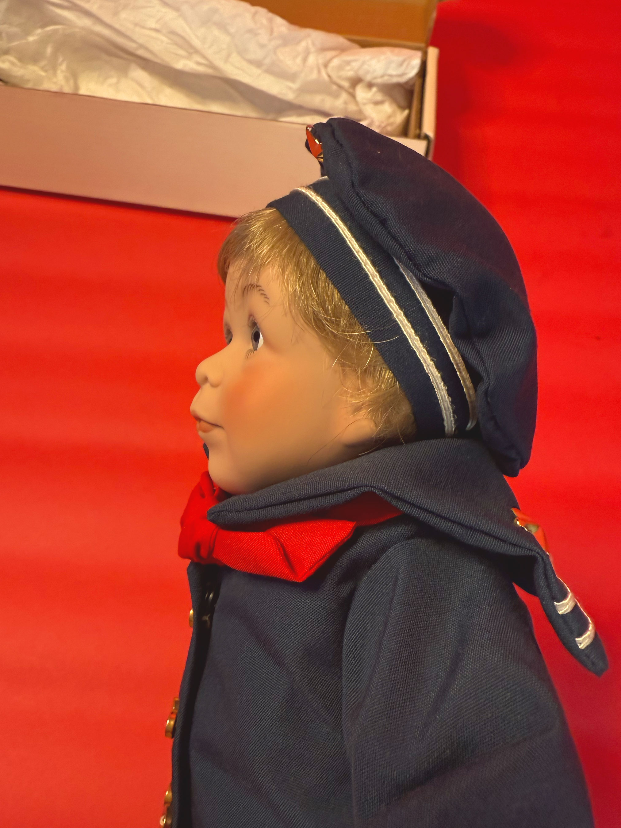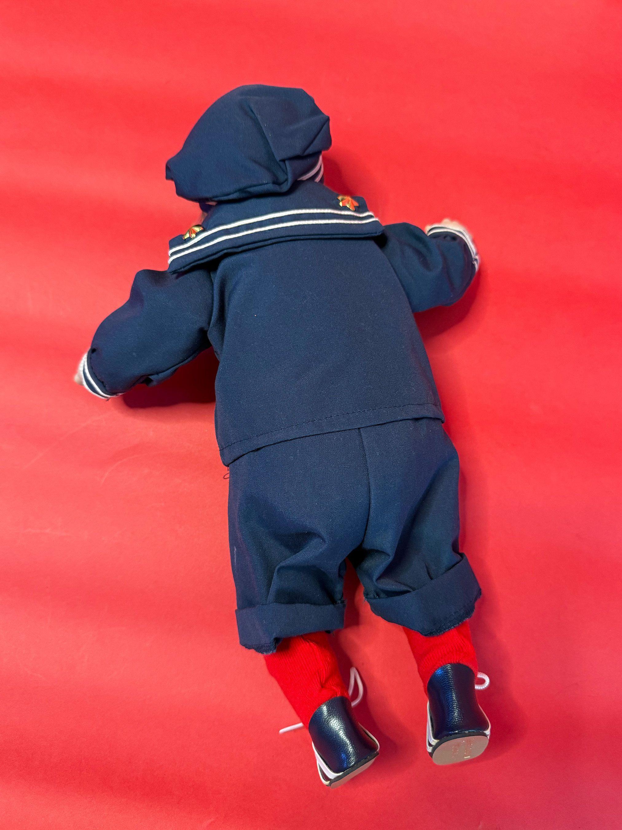 Display Billy Boy on a vintage shelf, nursery dresser, or in your collector's cabinet. Perfect for fans of Americana, sailor-themed decor, or heirloom dolls. Adds a nostalgic and wholesome touch to any vintage vignette.
