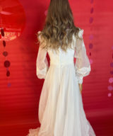Add platforms, soft curls, and a red lip for full retro romance. Not a bride? Make it your gala, photoshoot, or costume party moment.